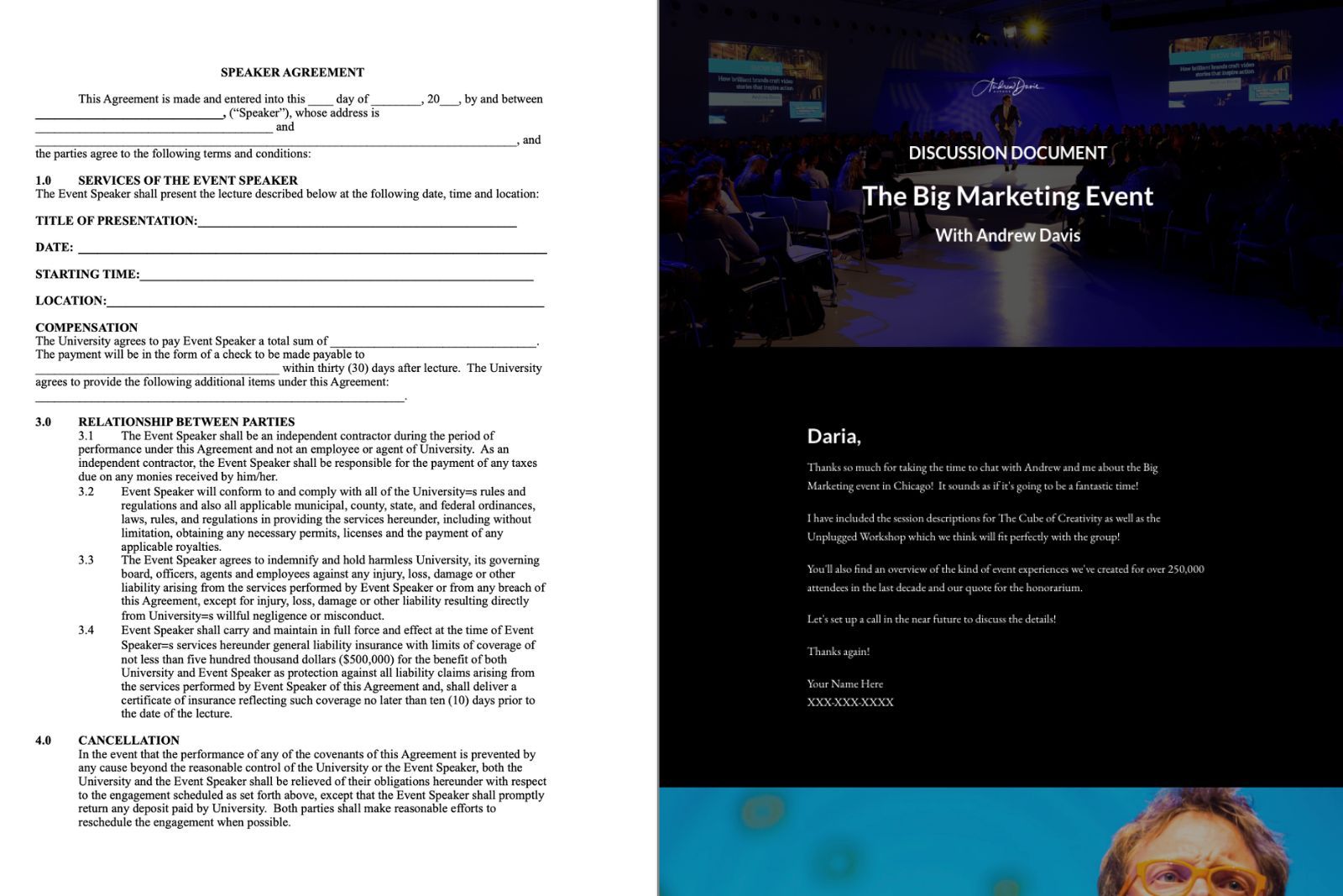 Okay… first things first. This isn’t really a document. It’s not a piece of paper, a PDF, or even an email that you send to an event organizer.