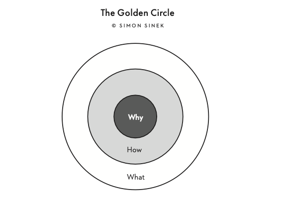 Simon Sinek uses The Golden Circle to show that people don’t buy what you do, but rather buy why you do it.