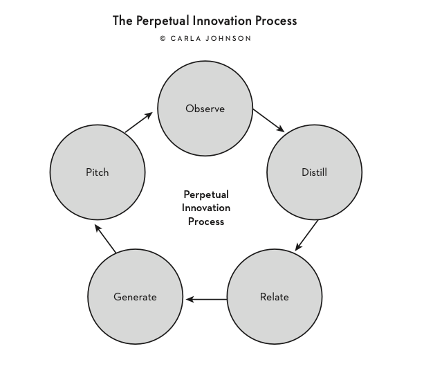 Carla Johnson’s contextual model helps her explain The Perpetual Innovation Process.